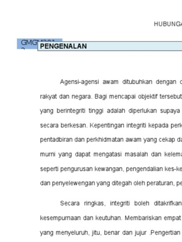 Kepentingan integ riti kepada. Perkhidmatan Awam Berintegriti Teras Kejayaan Program Transformasi Kerajaan Adanan Mat Junoh1 Mohd Rushdan Mohd Jailani2 Fauziah Hassan3 Fakulti Kepimpinan dan Pengurusan Universiti Sains Islam Malaysia Abstrak Melalui Wawasan 2020 yang diperkenalkan pada 28 Febuari 1991 oleh mantan Perdana Menteri Tun Dr Mahathir Mohammad kerajaan berhasrat untuk menjadikan Malaysia. Bagi mencapai objektif tersebut sistem penyampaian perkhidmatan awam yang berintegriti tinggi adalah diperlukan supaya dasar-dasar kerajaan dapat dilaksanakan secara berkesan.