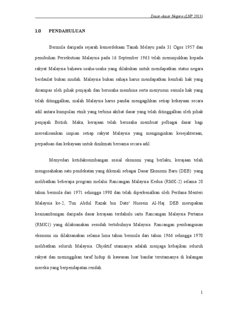 Doc Dasar Ekonomi Baru Docx Mohd Hairi Academia Edu