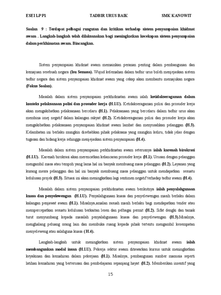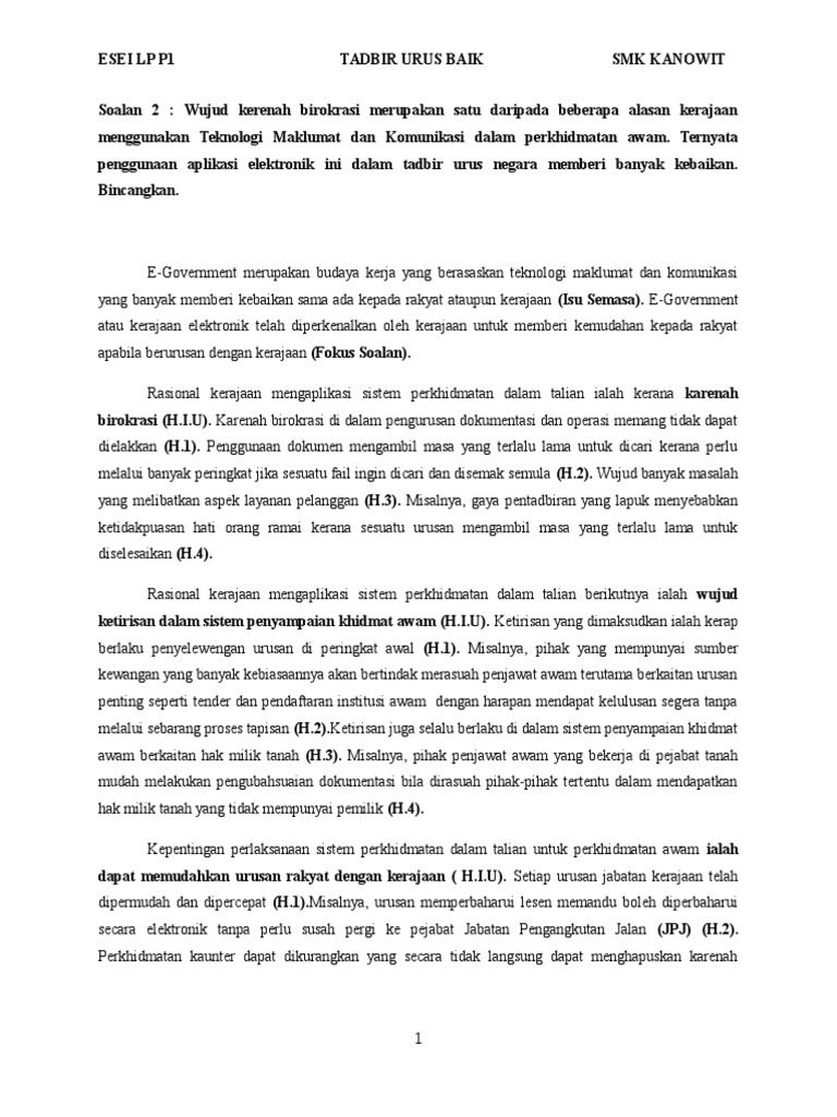 Pengajian Am Esei Tadbir Urus Baik